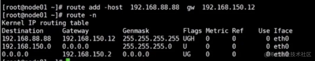 route add host 192.168.88.88 gw 192.168.150.12