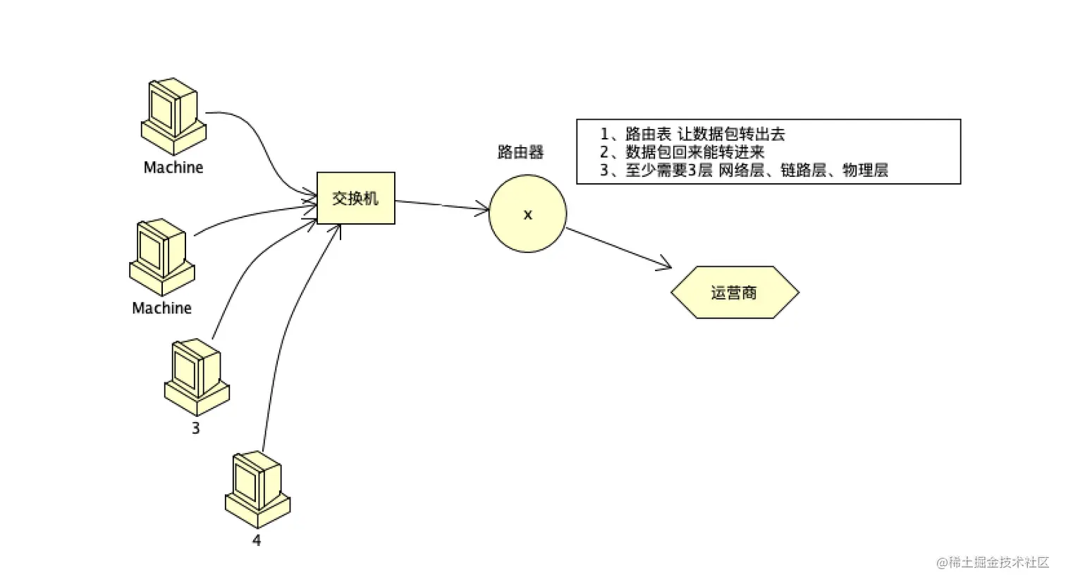 路由器上有2个接口 一个是交换机 一个是IP运营商