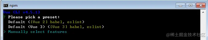 使用命令: vue create vue-demo