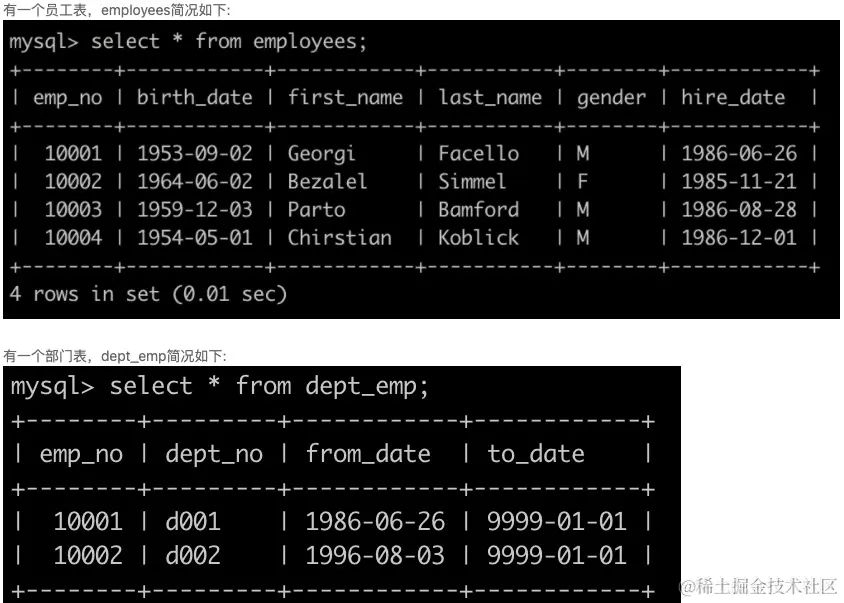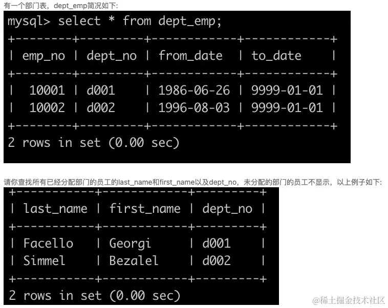 SQL4 查找所有已经分配部门的员工的last_name和first_name以及dept_no