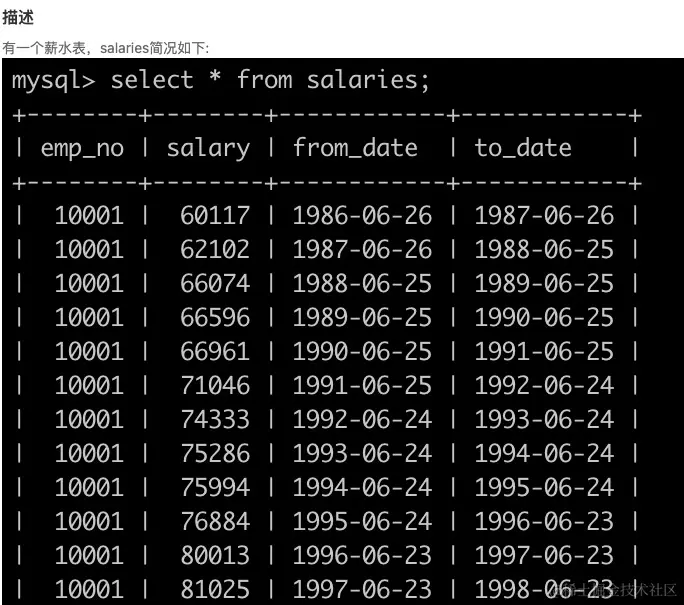 估计这题原本是统计salaries表中员工薪水涨幅次数大于15次的员工编号和涨幅次数,那我们顺着这个思维来思考下吧。