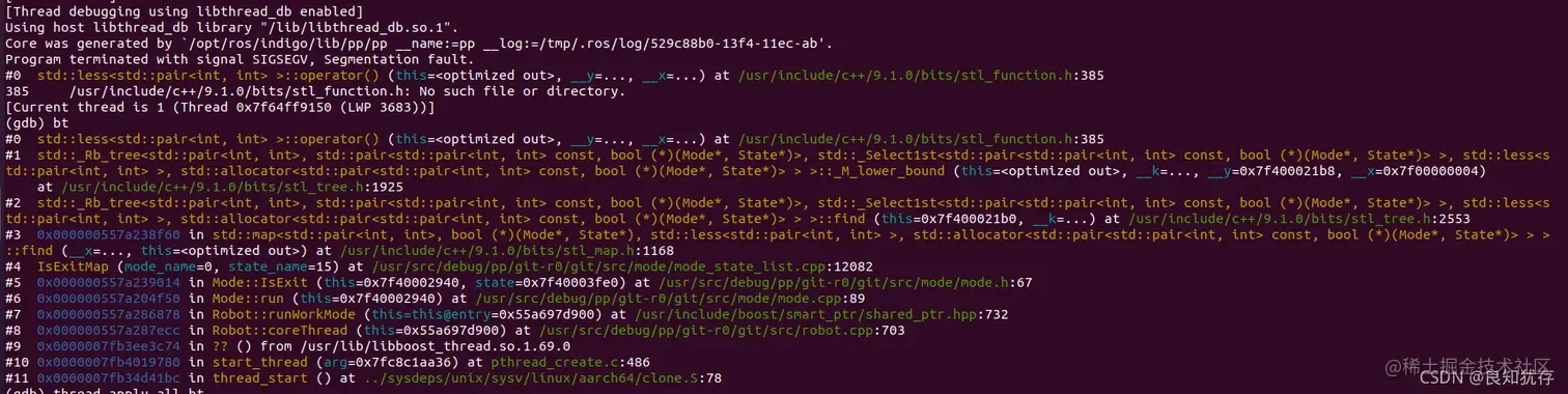 这个coredump文件在使用bt命令之后发现 此处的堆栈信息看上去都很正常,无法显示出代码在哪里了出现了问题。