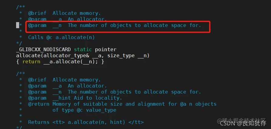 打开对应的代码位置之后发现__n参数 是进行分配空间的数量的参数。