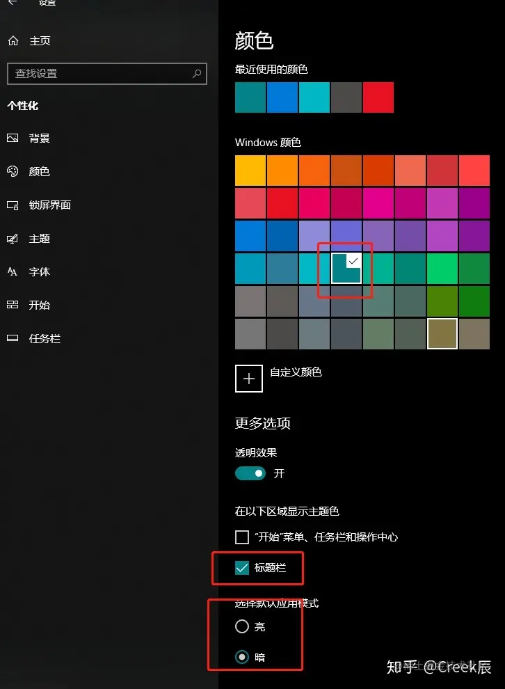 Win+i - 个性化 - 颜色