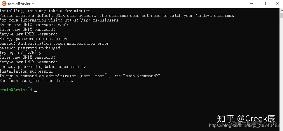 安装完成之后,就是愉快而兴奋的使用环节了,首先在开始中点击Ubuntu,经过几分钟的install,配置user和password即可。