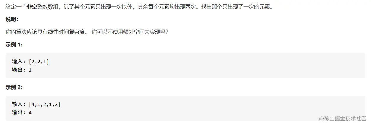 首先来看例子LC136,题目如下: