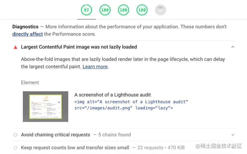Lighthouse 现在将检测 LCP 元素是否是惰性加载的图像,并建议删除它的 loading 属性。
