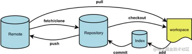 - repository(仓库):git管理的本地仓库,index中确定需要的更改提交到仓库中,存放提交的修改与历史变动;
