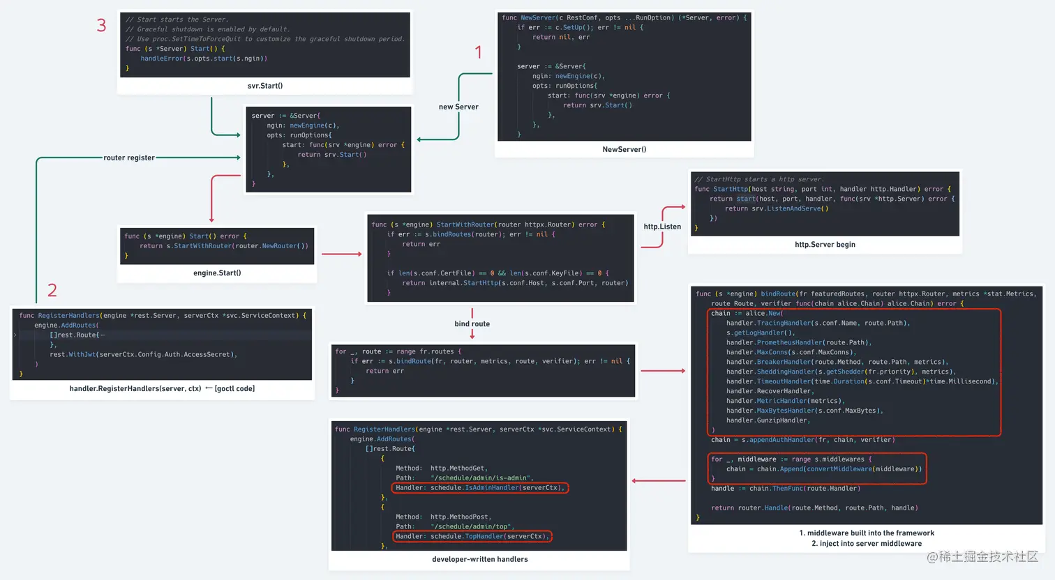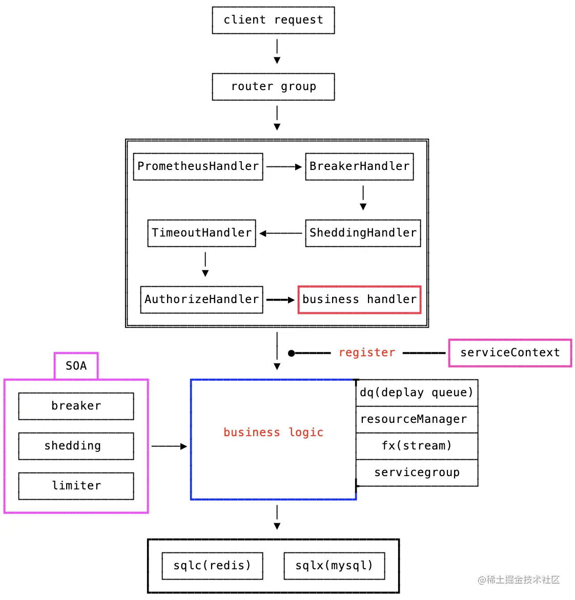 serviveCtx中,在 handler 中共享(至于资源池化,交给资源自己处理,serviveCtx只是入口和共享点) - 独立 router 声明文件,同时加入 router group 的概念,方便开发者整理代码结构