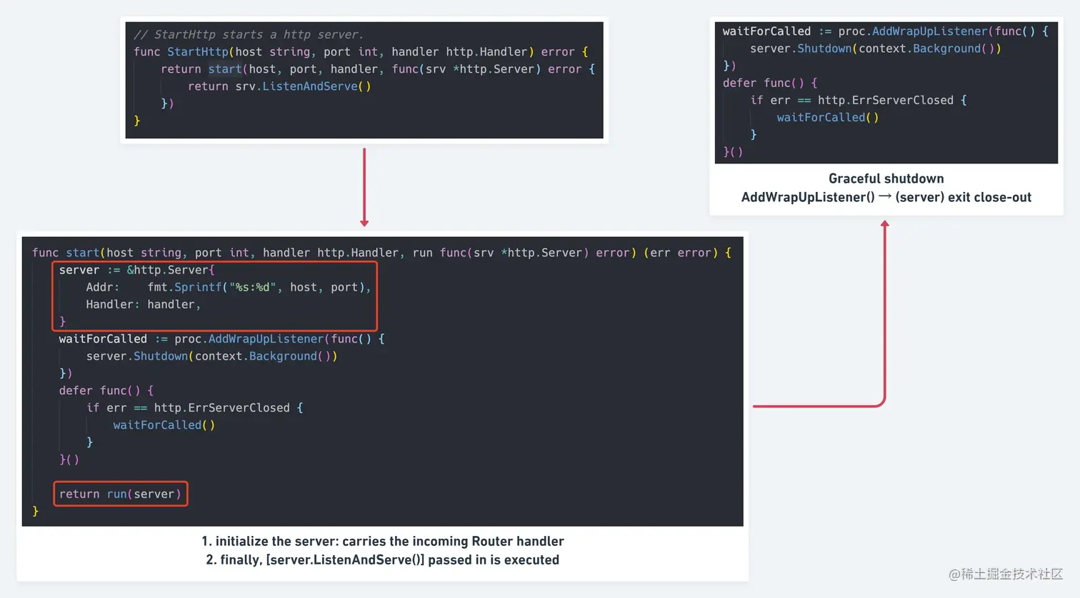 func start(..., handler http.Handler, run func(srv *http.Server) error) (err error) {