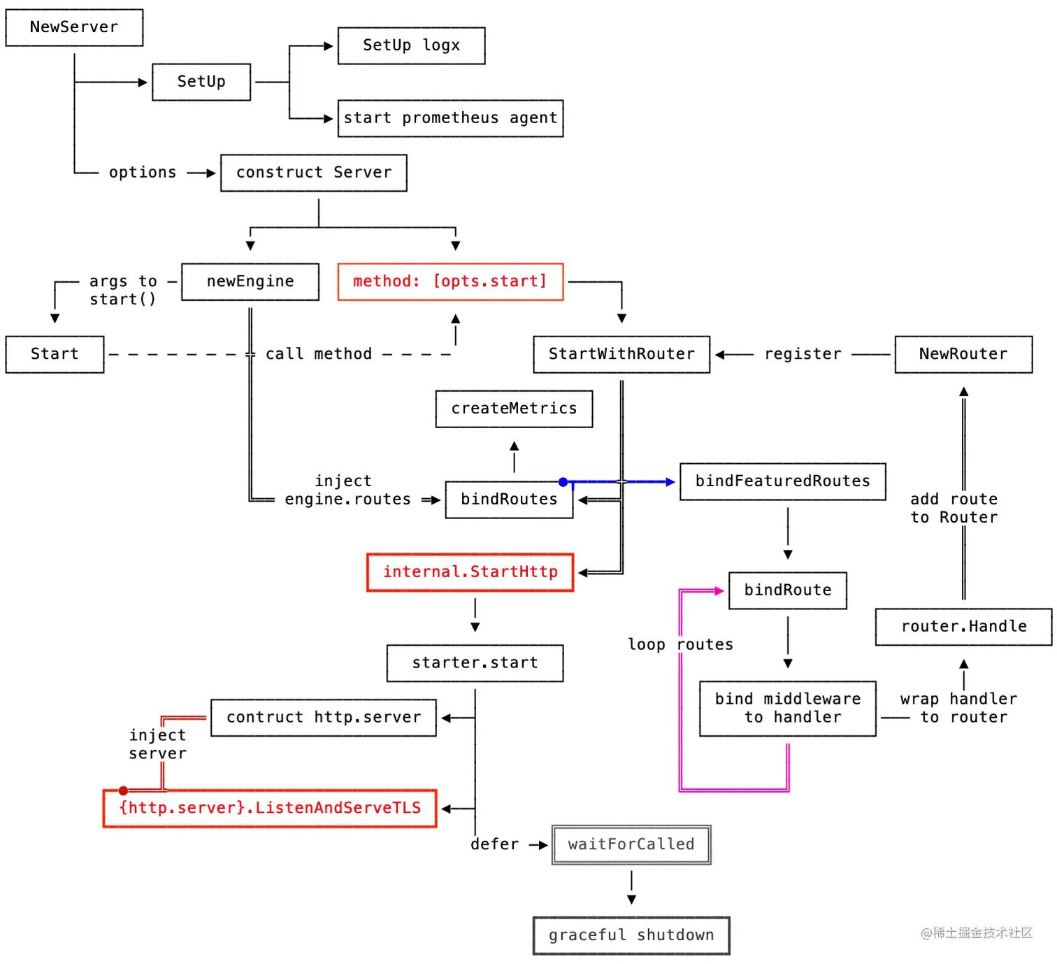 上图描述了整体 server 启动经过的模块和大致流程。准备按照如下流程分析 rest 实现: