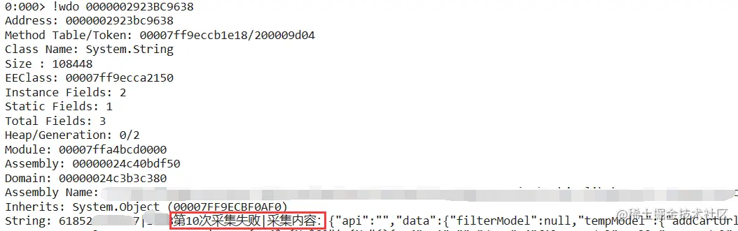对,这个 queue 居然有 395w 的积压,到底积压了什么东西,可以用 !wdo 看一下string内容。