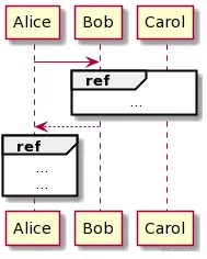 ref over <生命线名称> : <内容>: reference 的范围和参考内容ref over ... end ref: 可以换行写参考内容