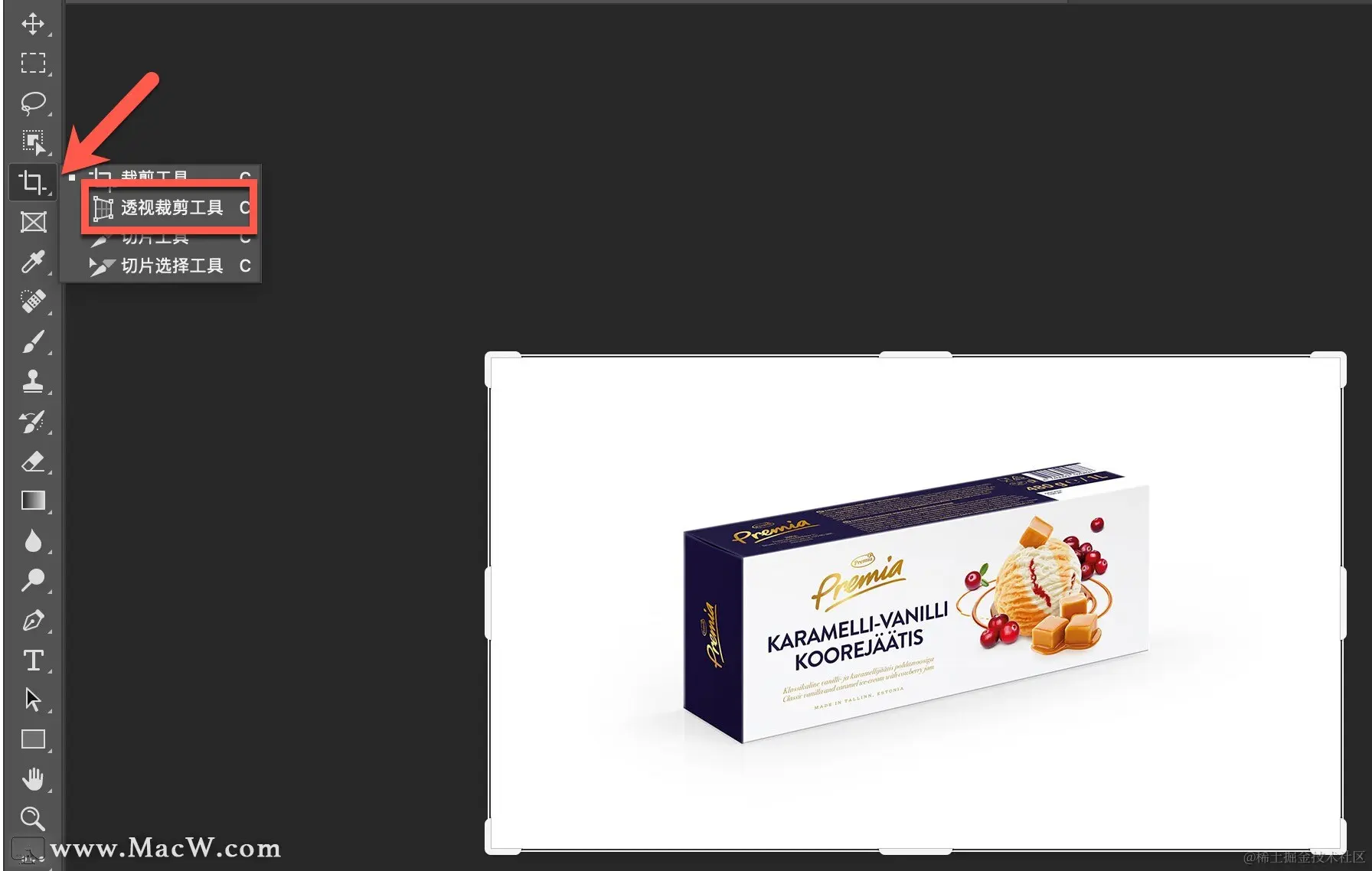 右击裁剪工具,选择透视裁剪工具