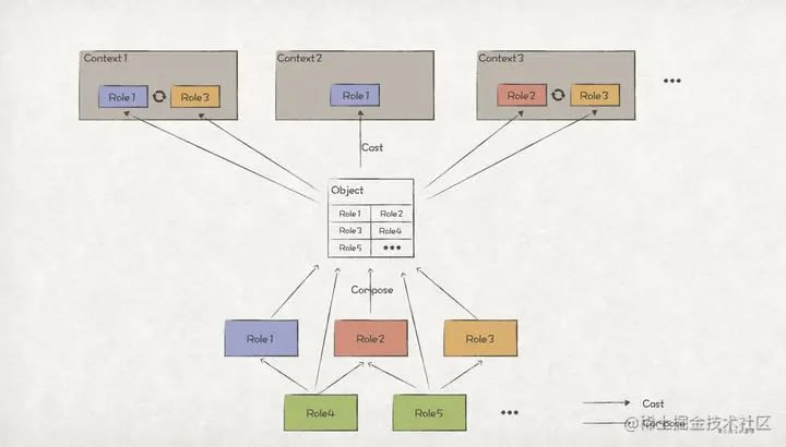 摘要:将DCI架构总结成一句话就是:领域对象(Object)在不同的场景(Context)中扮演(Cast)不同的角色(Role),角色之间通过交互(Interactive)来完成具体的业务逻辑。