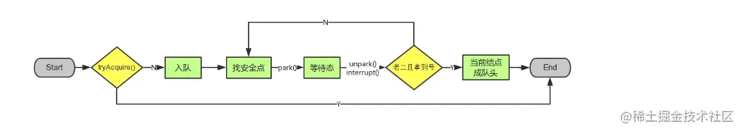 // tryAcquire(arg)没有成功,这个时候需要把当前线程挂起,放到阻塞队列中。