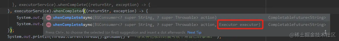这种写法你注意,whenComplete(returnStr, exception) 返回信息和异常信息在这里都有了。