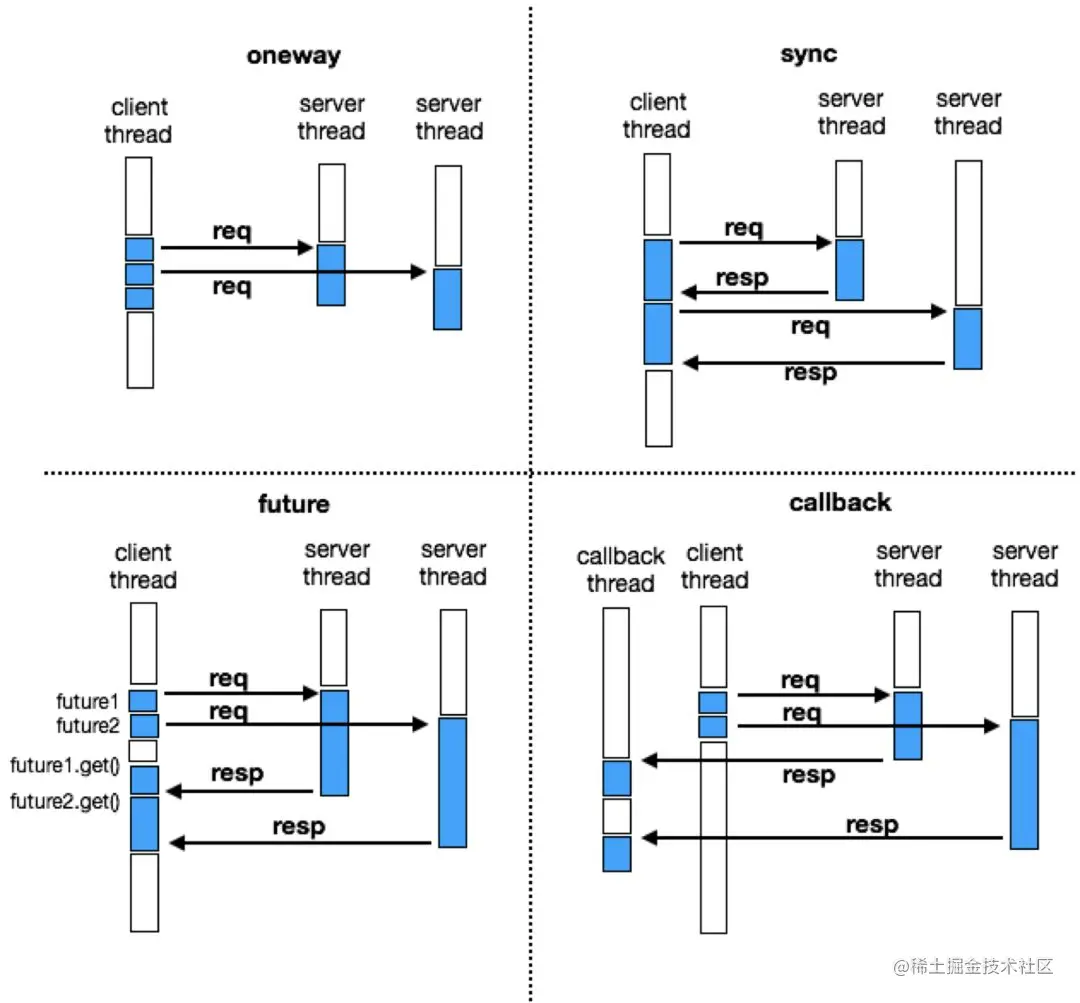 我不得不又把这张图拿出来说说了,主要关注下面的两种 future 和 callback:
