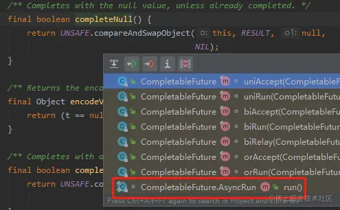 你看这里有一个专门的 completeNull 方法,其中的调用者就有 AysncRun 方法: