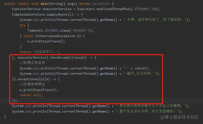 这就是我第一次接触到 CompletableFuture 后,学到的第一个让我感到舒服的地方。