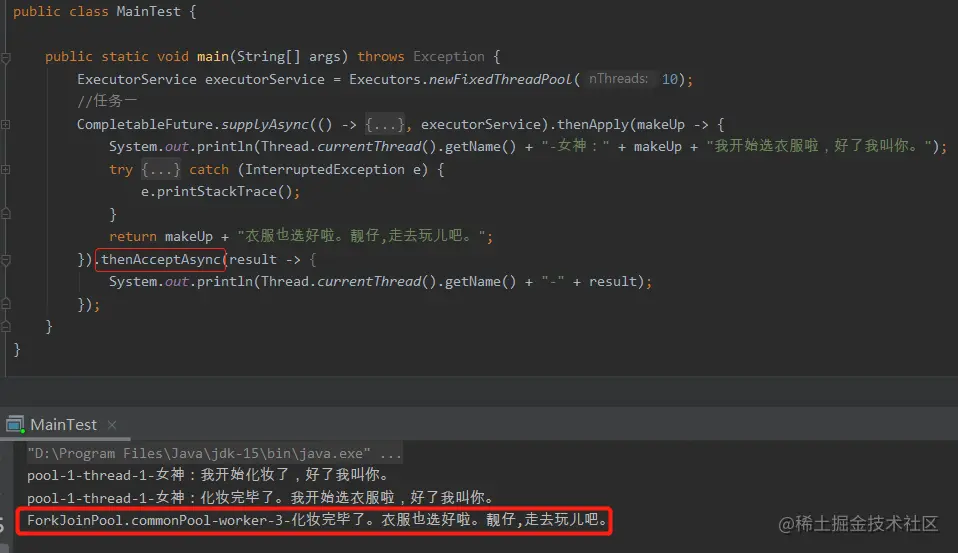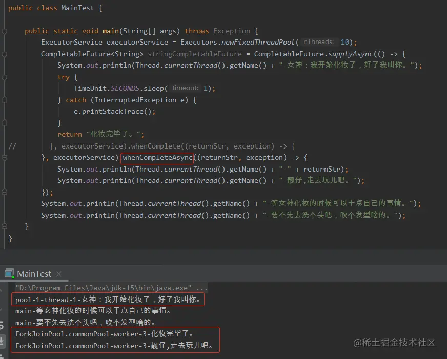 用 CompletableFuture 写一遍上面的程序就是这样的: