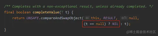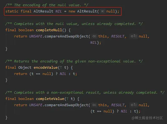 答案就是我框起来的部分:在 CompletableFuture 里面,把 null 也封装到 AltResult 对象里面了。