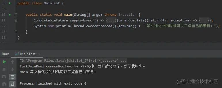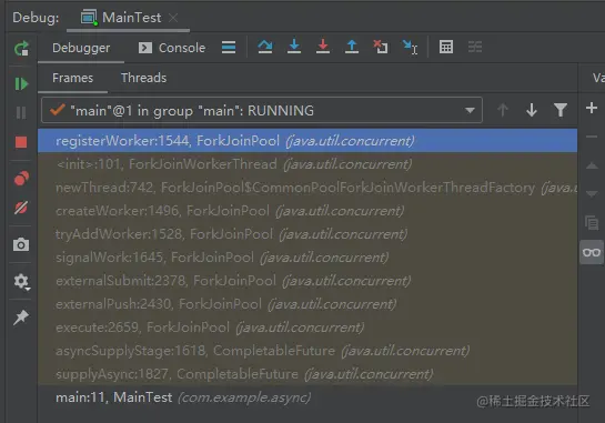 你可以在其调用的地方打上断点,然后把我前面用 runAsync 提交方式的代码跑起来: