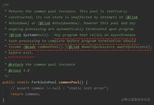 如果,线程池里面的任务需要在程序终止前完成,那么应该在退出前调用 commonPool().awaitQuiescence。