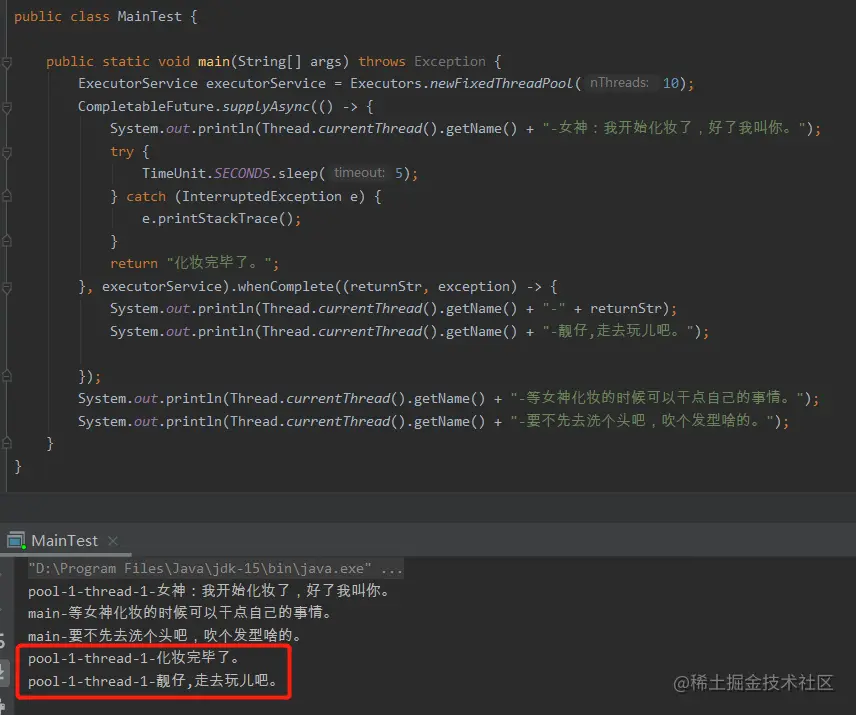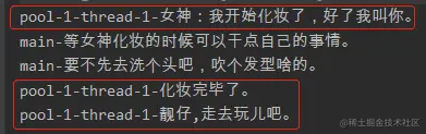 pool-1-thread-1,女神化妆的这个线程,她好了之后会主动叫你,你明白吗?