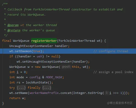 在 ForkJoinPool 里面,把线程都设置为守护线程的地方就在这里: