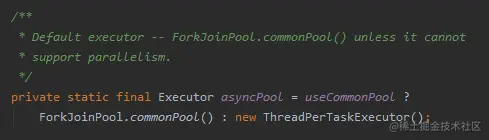 首先 CompletableFuture 默认的线程池是 ForkJoinPool,这个是很容易就能在源码里面找到的: