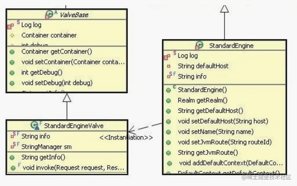 为了防止水被引出来而不能流到下一个容器中,每一段管子最后总有一个节点保证它一定能流到下一个子容器,所以每个容器都有一个 StandardXXXValve。只要涉及到这种有链式是处理流程这是一个非常值得借鉴的模式。