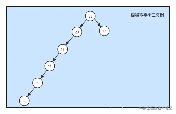存在问题:树可以认为是介于数组和链表二者之间的一种数据结构,拥有较快的查询速度同时拥有较快的插入和删除速度。但是在树出现极端或严重的不平衡情况下会导致效率低下