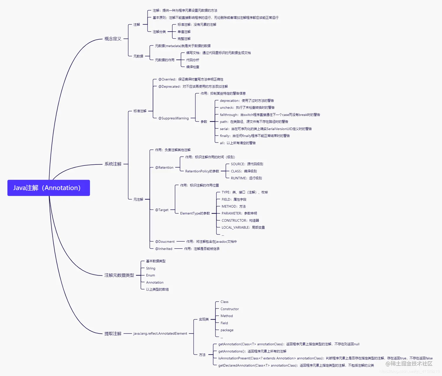 Annotation(注解)是Java提供的一种对元程序中元素关联信息和元数据(metadata)的途径和方法。Annotation(注解)是一个接口,程序可以通过反射来获取指定程序中元素的Annotation对象,然后通过该Annotation对象来获取注解中的元数据信息。