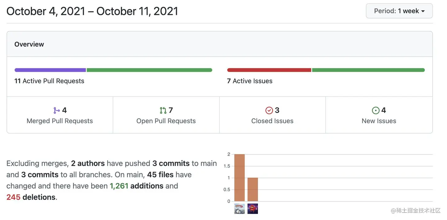 本周合并 Pull requests 4个,新增Pull requests 7个,关闭 Issues 3个,新增 Issues 4个。总计45个文件修改,新增1261行代码,删除245行代码。