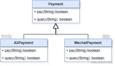 它既然作为支付功能的扩展类,还应该具备支付应有的功能吧,也就是说它应该有支付和查询的方法,所以它应该实现Payment接口类