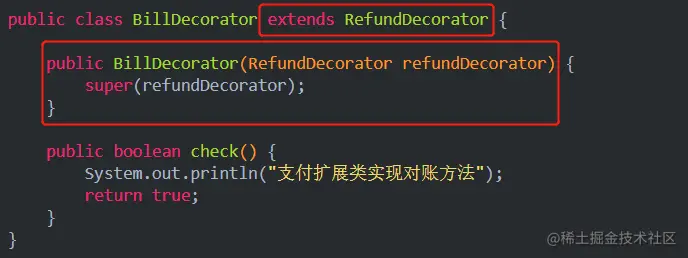 因为RefundDecorator类中已经给Payment提供了实例化方法,所以我们只需要在账单类里面给RefundDecorator类提供实例化方法就可以了