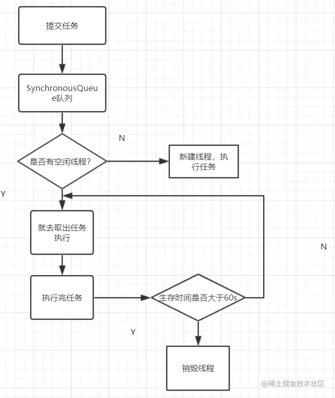 newCachedThreadPool创建一个可缓存线程池,如果线程池长度超过处理需要,可灵活回收空闲线程,若无可回收,则新建线程。