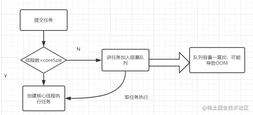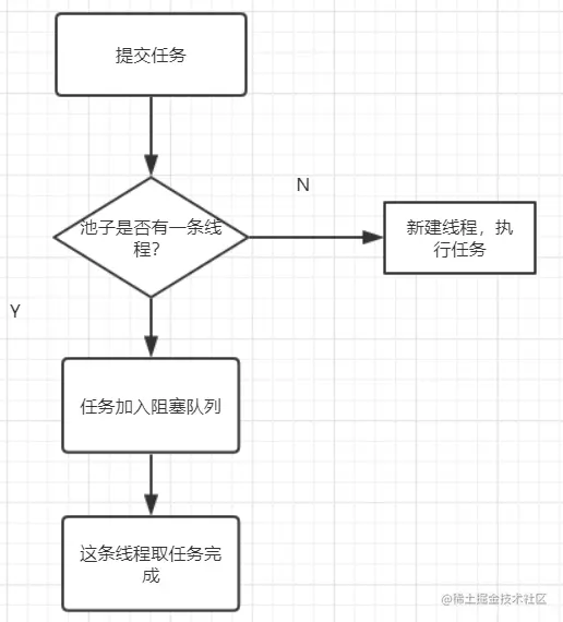提交一个任务,线程池里存活的核心线程数小于线程数corePoolSize时,线程池会创建一个核心线程去处理提交的任务。