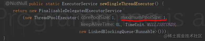 newSingleThreadExecutor 创建一个单线程化的线程池,它只会用唯一的工作线程来执行任务,保证所有任务按照指定顺序(FIFO, LIFO, 优先级)执行。