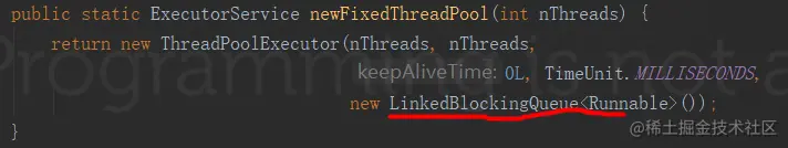 LinkedBlockingQueue(可设置容量队列),基于链表结构的阻塞队列,按FIFO排序任务,容量可以选择进行设置,不设置的话,将是一个无边界的阻塞队列,最大长度为Integer.MAX_VALUE,吞吐量通常要高于ArrayBlockingQuene;newFixedThreadPool线程池使用了这个队列