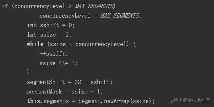 concurrentcyLeve(Max=65536)l计算出segments数组的长度(2的N次方,Max=65536)