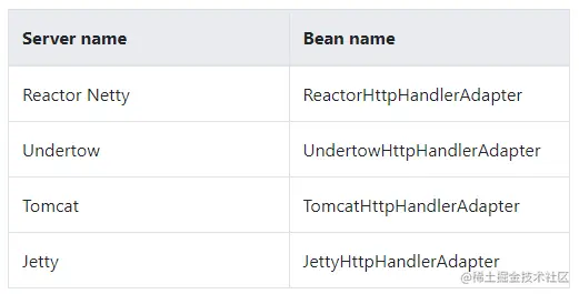 以Tomcat 容器为例展示创建过程,使用的是 TomcatHTTPHandlerAdapter 来连接Servlet 请求到HTTPHandler组件。