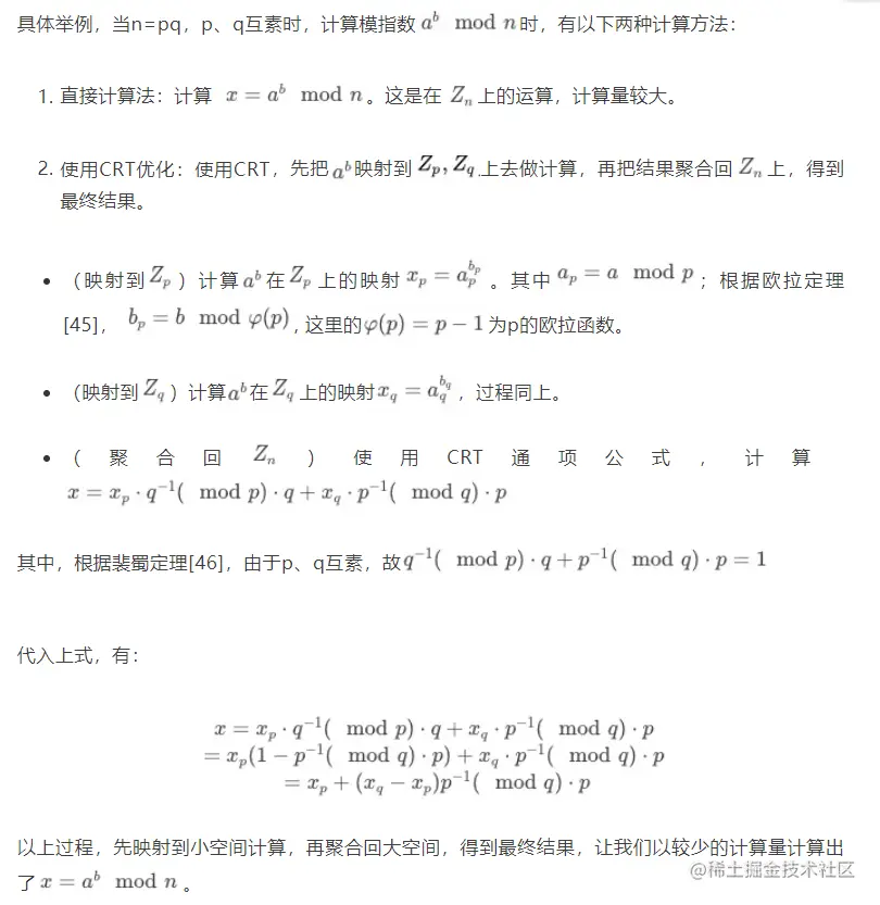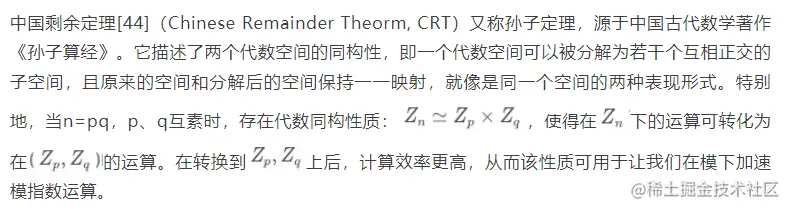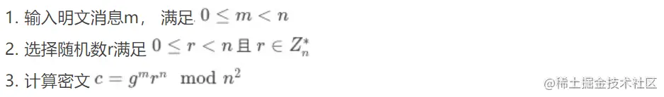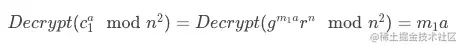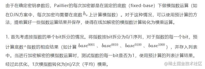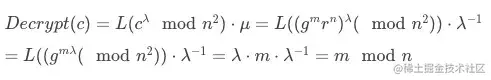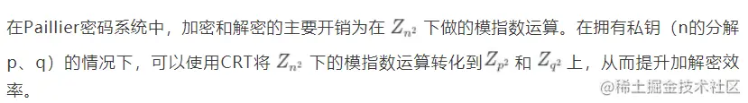 前m-1项均是n^2的倍数,在模n^2下消去,故这里模指数运算简化为了1次模乘,加速了加密过程: