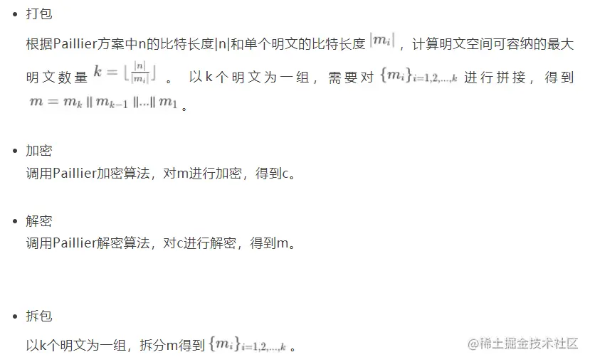 为了避免冗余,在明文较短且定长的情况下,我们充分利用明文空间,将多个明文打包为1个进行加解密 2。具体过程如下: