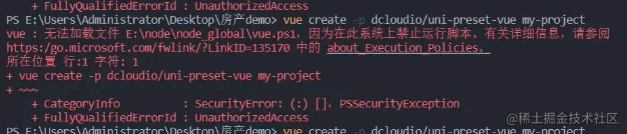vue : 无法加载文件 E:\node\node_global\vue.ps1,因为在此系统上禁止运行脚本。有关详细信息,请参阅 https:/go.microsoft.com/fwlink/?LinkID=135170 中的 about_Execution_Policies。