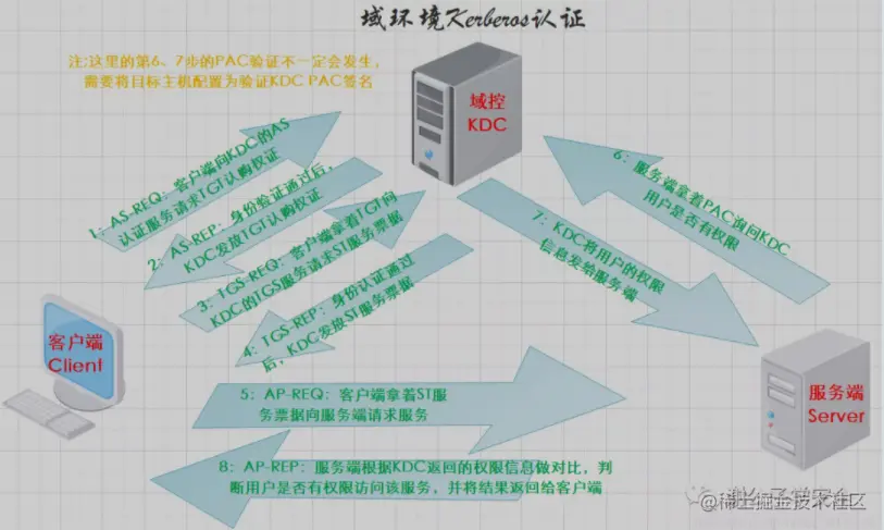 | DC | 域控 | | KDC | 密钥分发中心,域控担任 | | AD | 活动目录,包含与用户数据库 | | AS | Kerberos认证服务 | | TGT | AS分发,TGT认证权证 | | TGS | 票据授予服务 | | ST | ST服务票据,由TGS服务发送 |