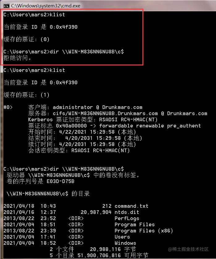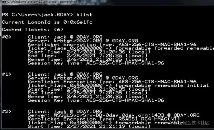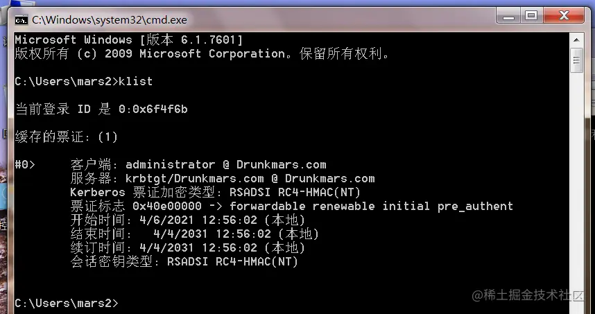 打开新的cmd,用klist查看凭证