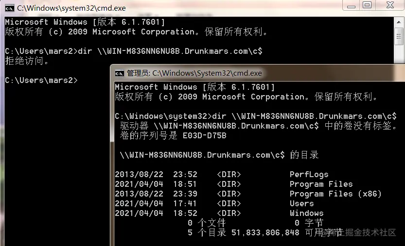 这里有一个坑,必须要管理员权限开cmd,不然也会显示拒绝访问