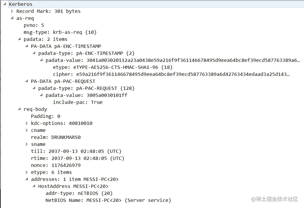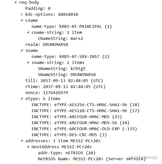 msg-type:消息类型,AS_REQ对应的是krb-as-req(10)